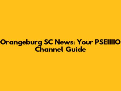 Orangeburg SC News: Your PSEIIIIO Channel Guide