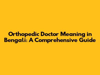 Orthopedic Doctor Meaning In Bengali: A Comprehensive Guide