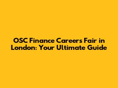 • When and where is the OSC Finance Careers Fair in London held? The OSC Finance Careers Fair in London typically takes place annually, usually in the autumn. The exact dates and location vary, so check the official OSC website or relevant event listings for the most up-to-date information.