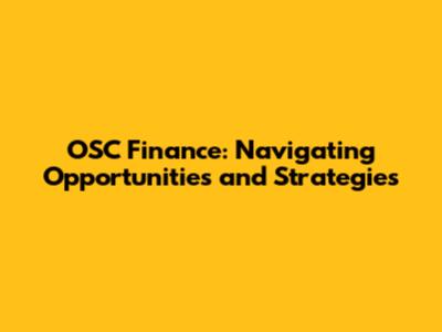 OSC Finance: Navigating Opportunities And Strategies