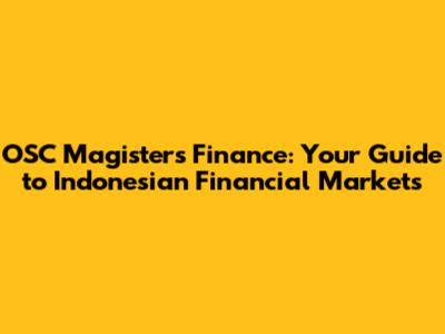 Hey everyone! Ever wondered about the financial landscape in Indonesia? Well, you're in the right place! We're diving deep into the world of OSC Magister's Finance, a fascinating area that's super relevant if you're looking to understand or even break into the Indonesian financial markets. This guide is designed to be your go-to resource, whether you're a seasoned finance pro or just starting to dip your toes in. We'll break down the essentials, explore the opportunities, and help you get a handle on what makes Indonesian finance so unique. So, grab a coffee (or teh manis!), and let's get started. Seriously, Indonesian finance is a complex beast, but it's also brimming with potential. From the vibrant stock market to the growing fintech scene, there's something for everyone. This article aims to provide you with a comprehensive overview, covering key aspects like the regulatory environment, investment opportunities, and the current trends shaping the market. We'll be looking at the role of OSC Magister and how it influences the financial ecosystem. This will not only make it a great read but also provide you with a solid foundation for further exploration. Get ready to learn about the key players, the types of investments, and the strategies that can help you succeed. It's a journey, but hey, it's a worthwhile one! So, stick around, and let's unravel the intricacies of Indonesian finance together. I can assure you that once you understand the core principles, you'll be well on your way to navigating the markets like a pro. Think of this as your personal cheat sheet to becoming financially savvy in Indonesia. We'll also provide a high-level view of the challenges and risks involved, ensuring that you're well-equipped to make informed decisions. We're talking real-world insights, actionable tips, and a clear, easy-to-understand approach. Are you in? Let's begin the exciting journey into Indonesian finance.
