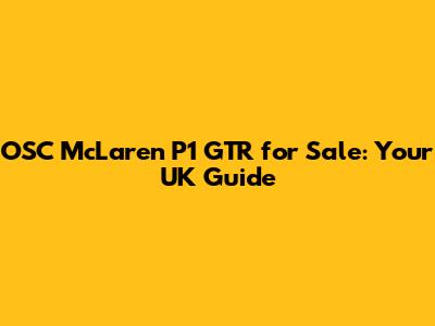 OSC McLaren P1 GTR For Sale: Your UK Guide