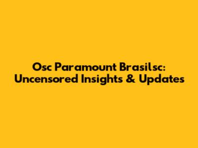 Osc Paramount Brasilsc: Uncensored Insights & Updates