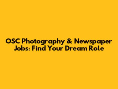 OSC Photography & Newspaper Jobs: Find Your Dream Role