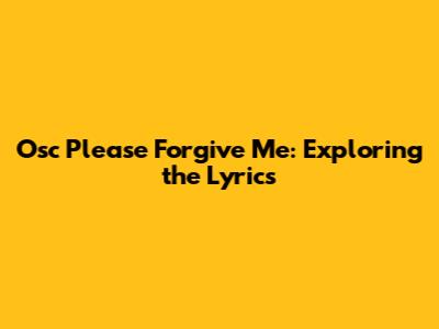 Osc Please Forgive Me: Exploring The Lyrics