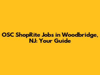 OSC Shoprite Jobs In Woodbridge, NJ: Your Guide