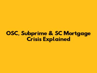 OSC, Subprime & SC Mortgage Crisis Explained