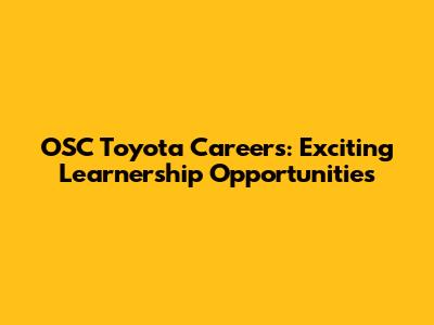 OSC Toyota Careers: Exciting Learnership Opportunities