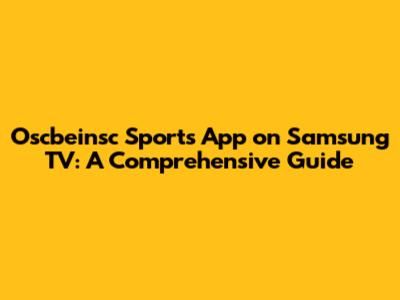 Oscbeinsc Sports App On Samsung TV: A Comprehensive Guide