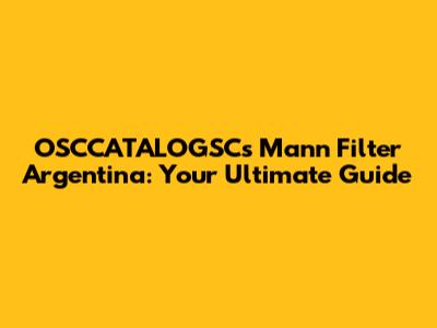 OSCCATALOGSCs Mann Filter Argentina: A Comprehensive Guide
