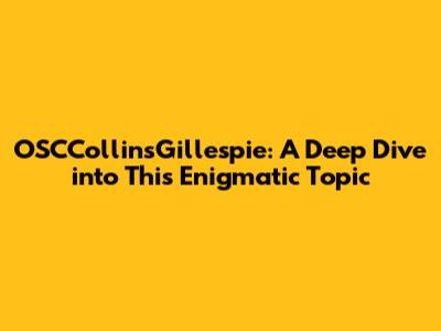 OSCCollinsGillespie: A Deep Dive Into This Enigmatic Topic