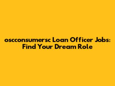 Oscconsumersc Loan Officer Jobs: Find Your Dream Role