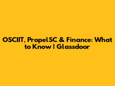 OSCIIT, PropelSC & Finance: What To Know | Glassdoor