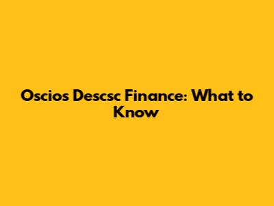 Oscios Descsc Finance: What To Know