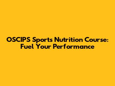 OSCIPS Sports Nutrition Course: Fuel Your Performance