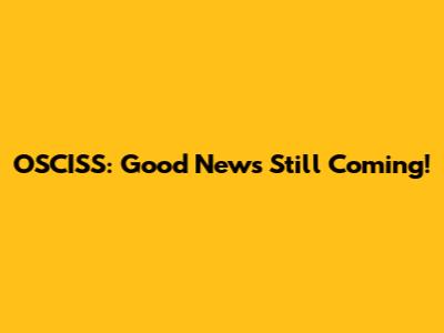 OSCISS: Good News Still Coming!