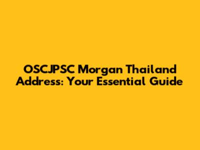 Understanding the Importance of the OSCJPSC Morgan Thailand Address