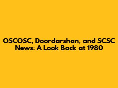 OSCOSC, Doordarshan, And SCSC News: A Look Back At 1980