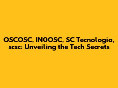 OSCOSC, IN0OSC, SC Tecnologia, Scsc: Demystifying The Tech