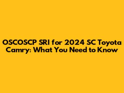 OSCOSCP SRI For 2024 SC Toyota Camry: What You Need To Know