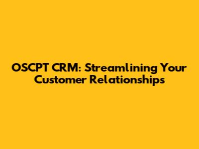 OSCPT CRM: Streamlining Your Customer Relationships