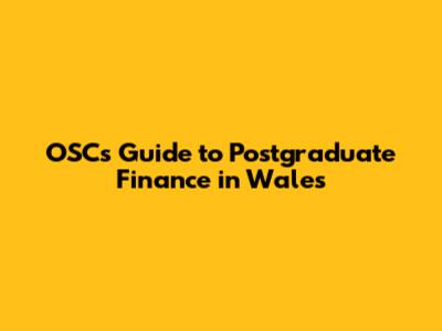 OSC's Guide To Postgraduate Finance In Wales
