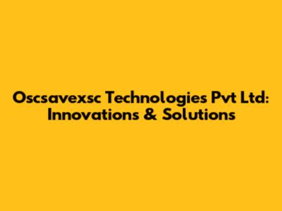 Oscsavexsc Technologies Pvt Ltd: Innovations & Solutions