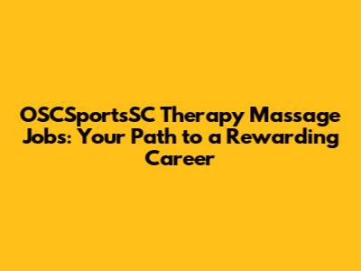 OSCSportsSC Therapy Massage Jobs: Your Path To A Rewarding Career