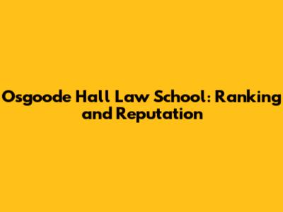 Osgoode Hall Law School: Ranking And Reputation