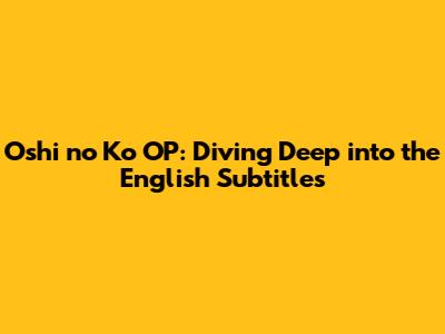 Hey guys! Ever get hooked on an anime intro and just HAVE to know what's being said? That's definitely been me, especially when it comes to Oshi no Ko. The opening theme (OP) is absolutely captivating, and if you're anything like me, you've been on the hunt for the Oshi no Ko OP English subtitles. Well, you're in the right place! We're gonna break down everything you need to know, from where to find those sweet subtitles to why the OP is such a banger in the first place. Let's get started, shall we?