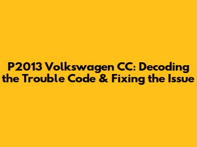 P2013 Volkswagen CC: Decoding The Trouble Code & Fixing The Issue