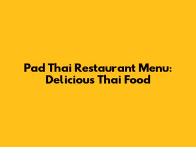 Pad Thai Restaurant Menu: Delicious Thai Food