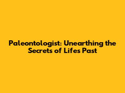 Paleontologist: Unearthing The Secrets Of Life's Past