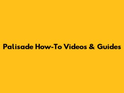 Palisade How-To Videos & Guides