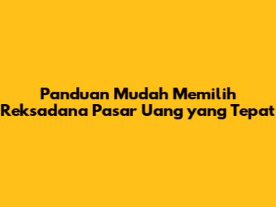 Panduan Mudah Memilih Reksadana Pasar Uang Yang Tepat