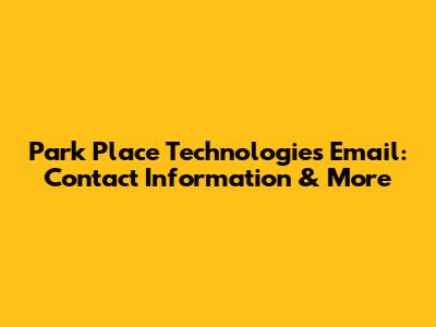Park Place Technologies Email: Contact Information & More