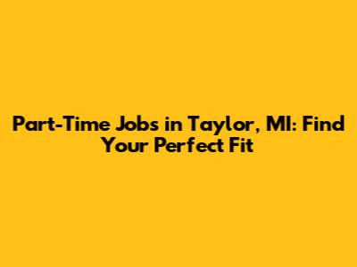 Part-Time Jobs In Taylor, MI: Find Your Perfect Fit