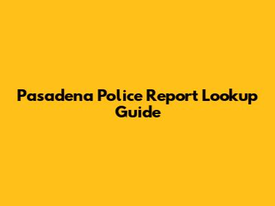 Pasadena Police Report Lookup Guide