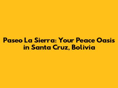 Hey guys! Are you looking for a tranquil escape right in the heart of Santa Cruz, Bolivia? Well, look no further than Paseo La Sierra! This amazing spot offers a perfect blend of nature, recreation, and relaxation. Whether you're a local wanting a weekend getaway or a tourist exploring the beauty of Bolivia, Paseo La Sierra promises an unforgettable experience. Let’s dive into what makes this place so special, covering everything from its serene environment to the fun activities you can enjoy there. We'll also touch on the local culture and how Paseo La Sierra fits perfectly into the vibrant Santa Cruz scene.
