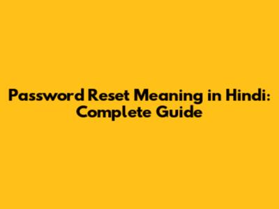 Password Reset Meaning In Hindi: Complete Guide