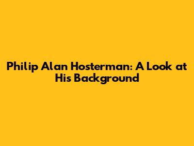 Philip Alan Hosterman: A Look At His Background
