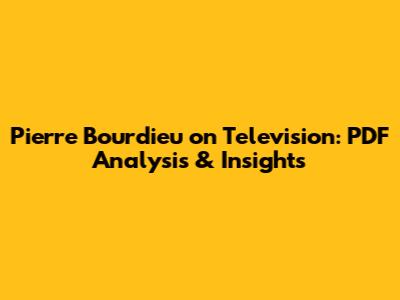 Pierre Bourdieu On Television: PDF Analysis & Insights