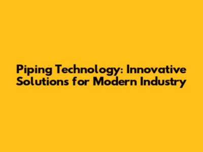 Piping Technology: Innovative Solutions For Modern Industry