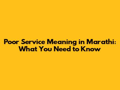 Poor Service Meaning In Marathi: What You Need To Know