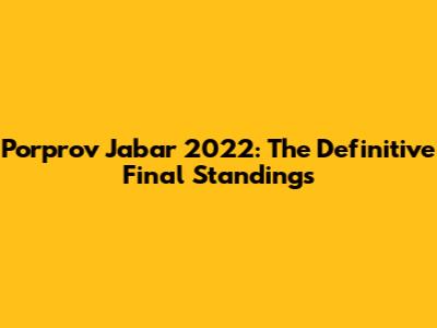 Hey everyone! Let's dive into the final standings of the Porprov Jabar 2022! This was a massive event, full of incredible athletic performances, nail-biting finishes, and the sheer joy of competition. So, if you're curious about who took home the gold, silver, and bronze, or just want to relive some of the highlights, you've come to the right place. We'll break down the final standings, look at some of the key takeaways, and celebrate the amazing athletes who made this event so special. Ready to get started? Let's go!