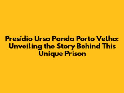 Presídio Urso Panda: A Closer Look At Porto Velho's Unique Facility