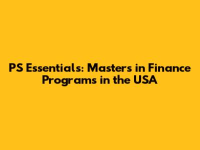 PS Essentials: Master's In Finance Programs In The USA