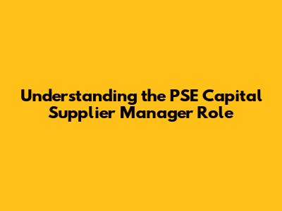 Understanding the PSE Capital Supplier Manager Role
