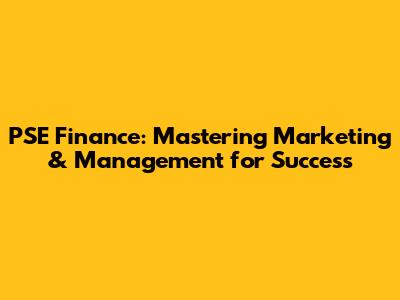 PSE Finance: Mastering Marketing & Management For Success
