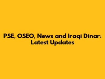 PSE, OSEO, News And Iraqi Dinar: Latest Updates